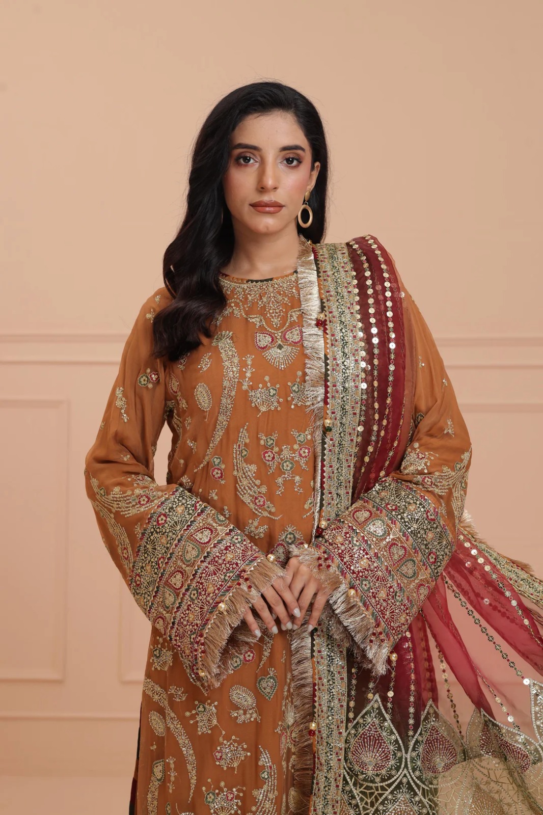 Coordinated soft organza dupatta with 4 sided embroided , completing the traditional look with grace and style.