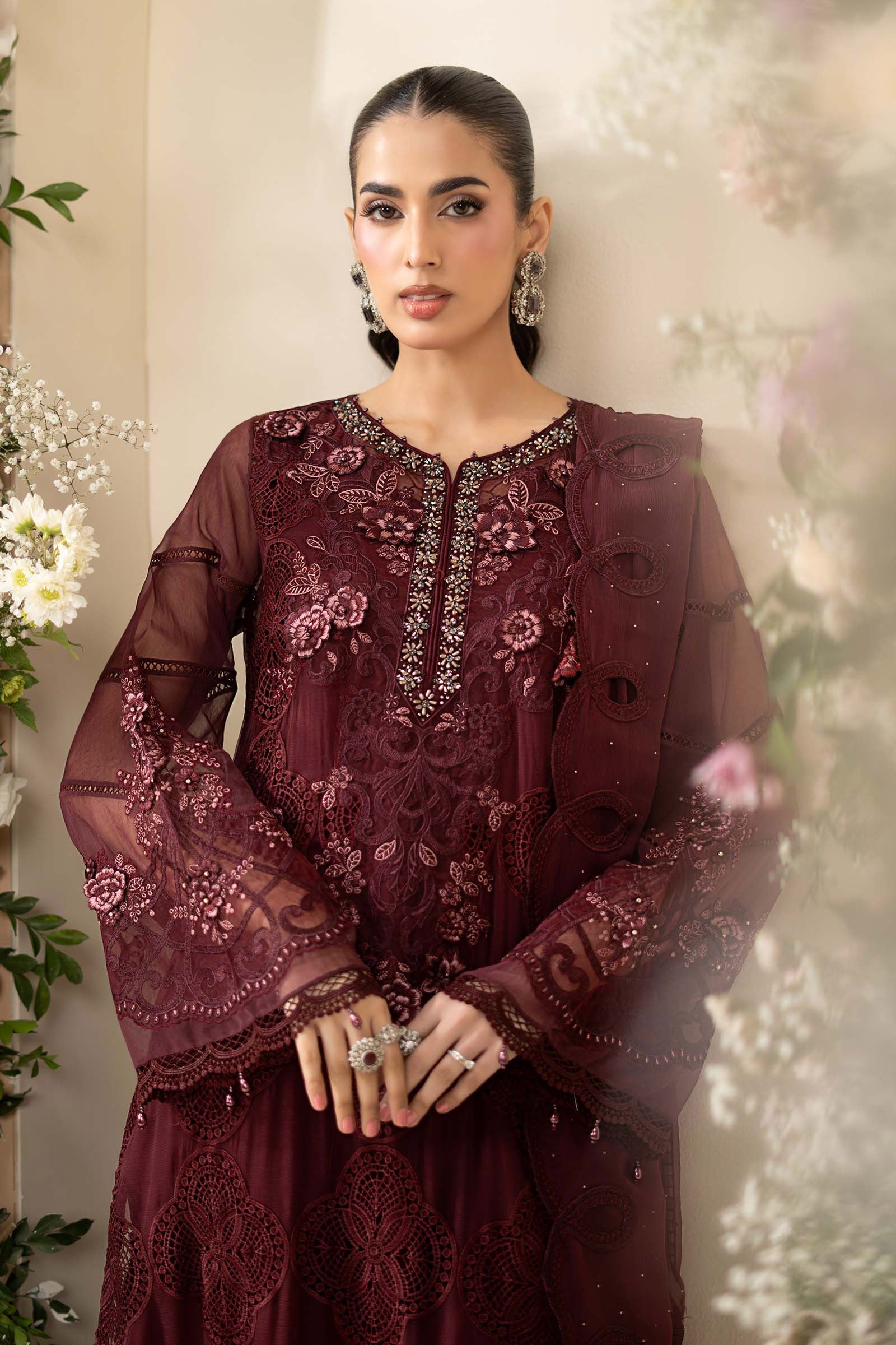 Maria B Maroon Chiffon Collection Replica