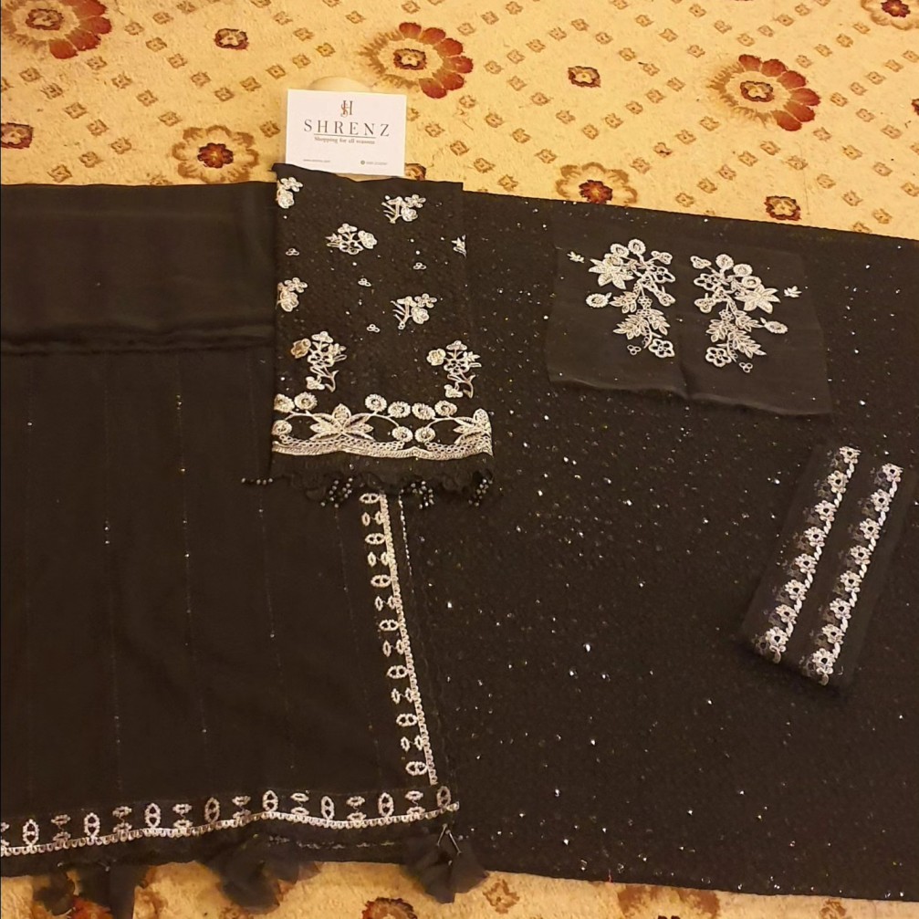 Coordinated soft chiffon dupatta with 4 sided embroided , completing the traditional look with grace and style.